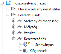 A keresztező objektumok a hossz-szelvény nézet keresztezési feliratstílusait használják.