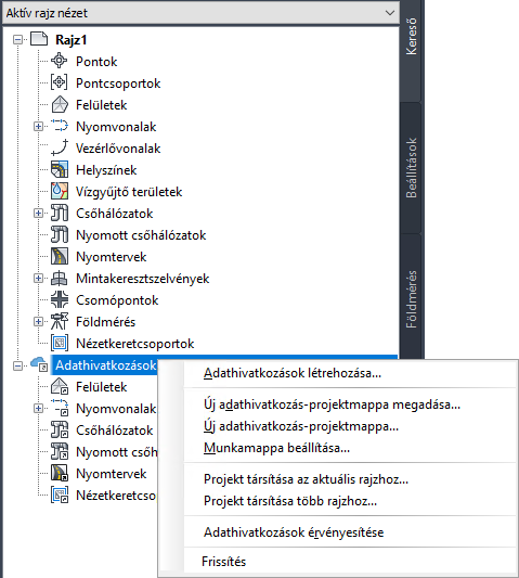 Két módon hozhat létre Civil 3D adathivatkozás-projektet: