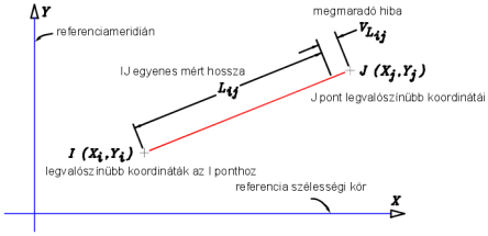 A következő ábrán a távolságmérési egyenlet geometriája látható: