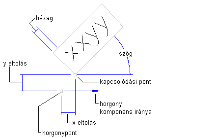 A Felirat összetevő elhelyezését egy horgonykomponens, horgonypont és egy csatolási pont megadásával lehet definiálni. Az elforgatási szög, illetve az X és Y távolság a horgonykomponens és horgonypont vonatkozásában kerül alkalmazásra.