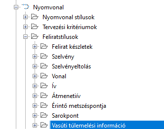A vasúti túlemelési információs feliratstílusok a Nyomvonalfelirat-stílusok gyűjteményben érhetők el: