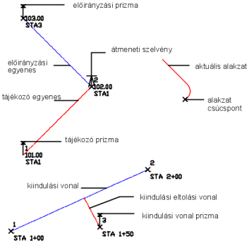Az interaktív grafikus alkotóelemek leírását a Földmérési felhasználói beállítások párbeszédpanelen találja.