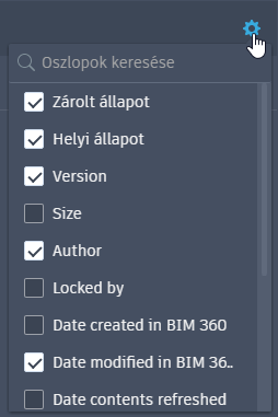 - Módosított: A dokumentum helyileg módosult, és a módosítások még nem lettek feltöltve az Autodesk Docs.
