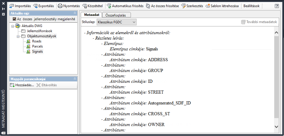 Az osztályozott rajzok metaadatai automatikusan jönnek létre.