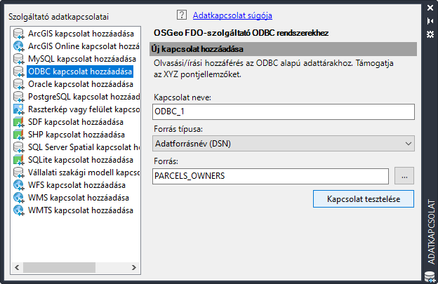 Kapcsolódás Access-adatbázishoz az AutoCAD Map 3D eszközkészlet programból