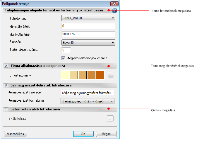 A témát a telkek értéke alapján definiálja: a világosabb színek az alacsonyabb értékű, a sötétebb színek pedig a magasabb értékű telkeket jelölik. A telek értéke az a „feltétel”, amely meghatározza a telek színét a térképen.