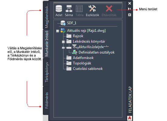 A Munkatér Intéző lehetővé teszi az aktuális térképen felhasznált adatforrások kezelését.
