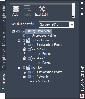 A Földmérés lappal importálhat és rendszerezhet földmérési adatpontokat.