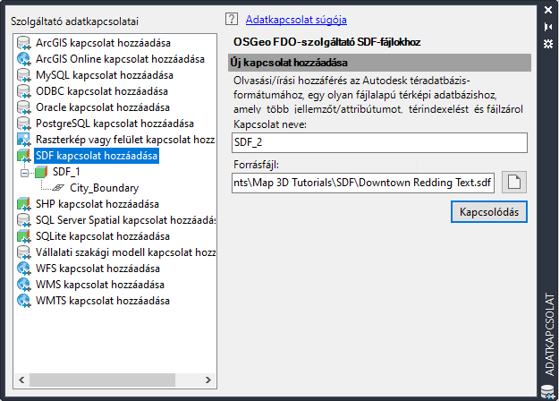 Jelölje ki az SDF szolgáltatót, és keresse meg a CITY_BOUNDARY.SDF nevű mintafájlt.