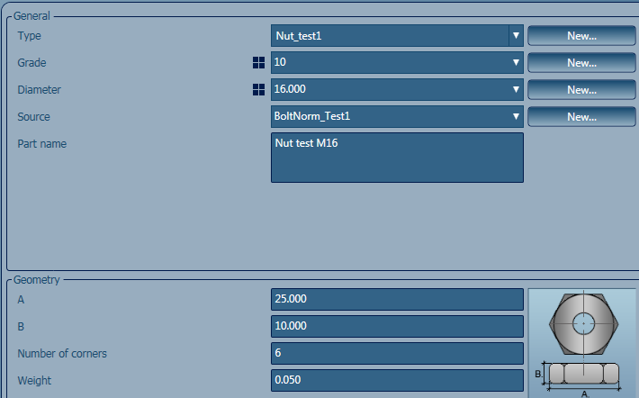 Create and Customize Nut and Washer Types. The following configuration was made, to suit the bolt that is defined in this example: