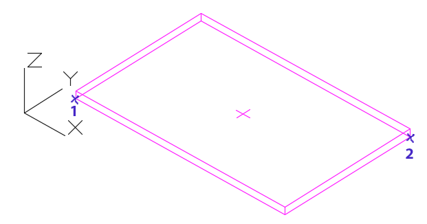 The rectangular plates of a default size are placed in the X/Y plane of the current coordinate system. The plate thickness direction is in the positive Z direction. You can control the Advance default plate thickness, using the Management Tools application.
