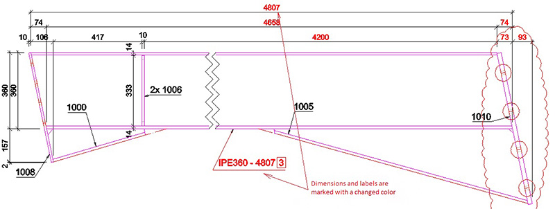 With these settings we can get a different marking on the labels and dimension texts.