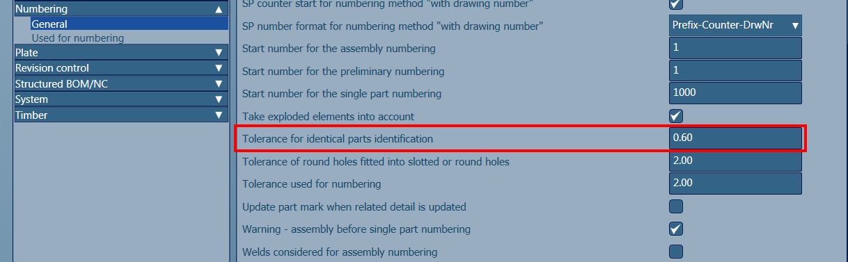 - Difference in width / length for a plate. You can have both width and length difference between two plates, but both values should be smaller or equal to the "Tolerance for identical parts identification" value.