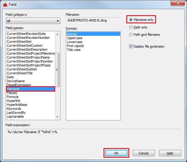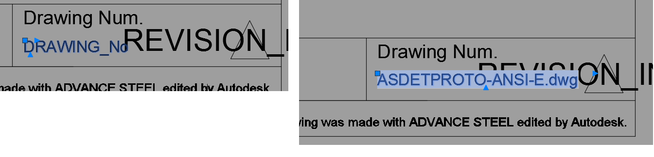 Note: To format the text as the existing one in the title block header (DRAWING_No), type "