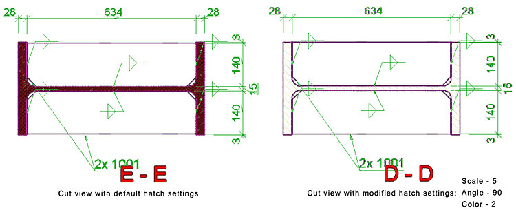As an example, change the scale and color of the Default Front hatch with the following values: