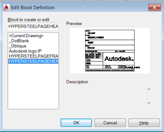 - Choose "select" and pick the block that you modified, and then press "enter" when asked for "HYPERSTEELPAGEHEADER".