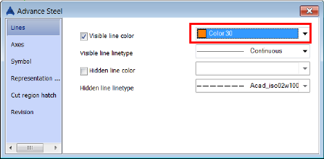 - Change the "Visible line color" to, for example, "Orange" (color 30), and press Enter.
