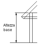 L'altezza di base corrisponde all'altezza della superficie inferiore del tetto nel punto più basso del bordo, dove inizia la sporgenza. Generalmente, indica l'altezza della base superiore del muro sul quale poggia il tetto.