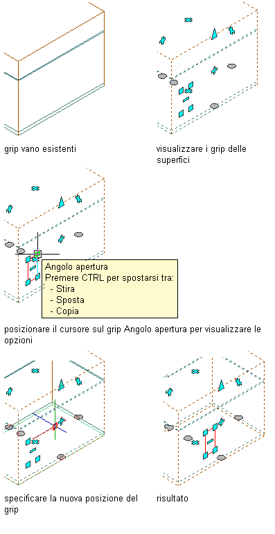 Copiare l'apertura sulla superficie. | Premere CTRL due volte e incollare l'apertura nella posizione desiderata. |