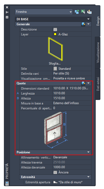Specifica della misura degli infissi di una finestra
