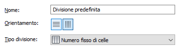 Ogni griglia di un assieme porta/finestra ha un'assegnazione di divisione che determina se la griglia è divisa orizzontalmente o verticalmente. La divisione determina inoltre il numero di celle, come pure la dimensione e la posizione delle stesse.