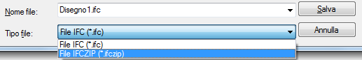 Nella finestra di dialogo Esporta file IFC, selezionare File IFCZIP (