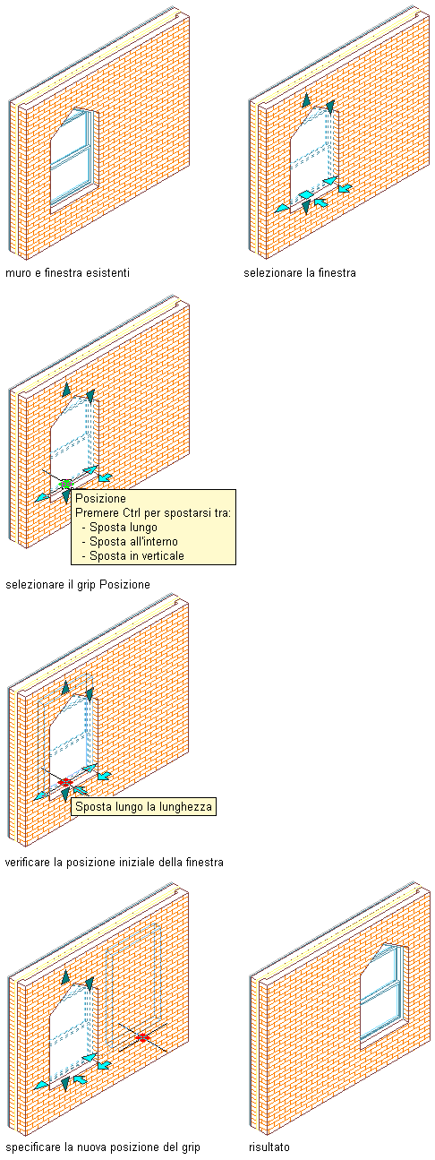 Per modificare la posizione di una o più finestre lungo un muro applicando un offset alle finestre rispetto ad una posizione di riferimento, attenersi alla procedura indicata di seguito.