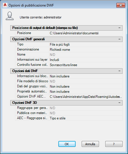 È possibile impostare la pubblicazione automatica dei disegni in formato PDF, DWF o DWFx al momento del salvataggio o della chiusura. Le impostazioni di pubblicazione automatica consentono inoltre di specificare se includere modelli, layout o entrambi e se pubblicare un file a più fogli o ad un solo foglio.
