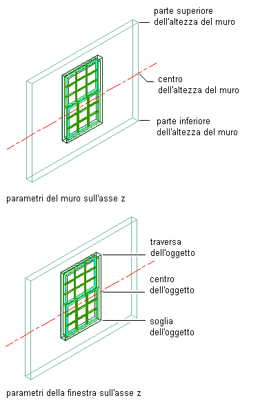 | La parte inferiore delle finestre | Selezionare Davanzale (Inferiore) dell'oggetto per l'opzione A. |