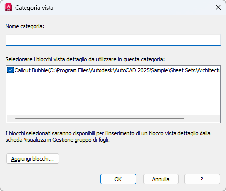 Visualizza la finestra di dialogo Elenco di blocchi.
