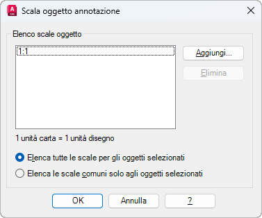 Aggiunge o elimina le scale supportate per l'oggetto annotativo selezionato.