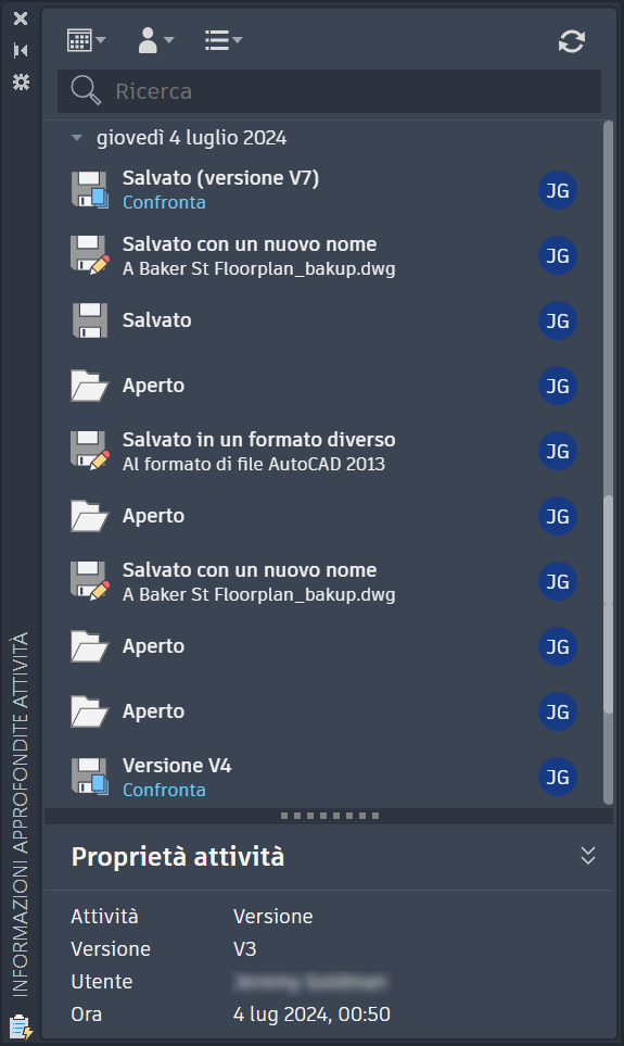 Informazioni approfondite attività consente di registrare gli aggiornamenti ad un file di disegno apportati da ciascun collaboratore, semplificando la collaborazione e aiutando a riprendere facilmente da dove si era interrotto.