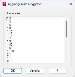 Visualizza l'elenco delle scale che possono essere aggiunte all'oggetto annotativo selezionato.