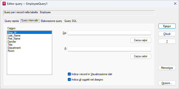 Apre la finestra di dialogo Opzioni di visualizzazione dati e di query.