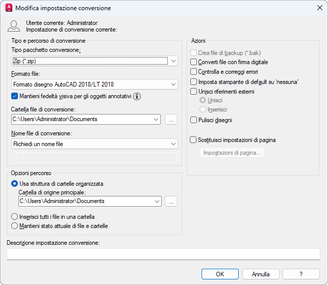 Descrizione impostazione di conversione