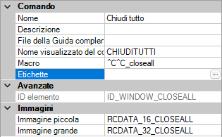 Nel riquadro Proprietà, selezionare il campo Etichette e fare clic sul pulsante […].