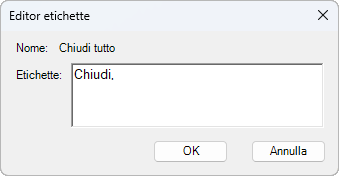 Nella finestra di dialogo Editor etichette, nella casella Etichette, immettere il testo che rappresenta l'etichetta del comando.