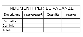 - Immettere TABELLA alla riga di comando.