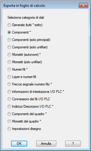 Le modifiche apportate al foglio di calcolo possono aggiornare i valori sui componenti, i morsetti, i moduli di I/O PLC e i numeri dei fili esistenti. Non è possibile inserire nuovi elementi nei disegni.