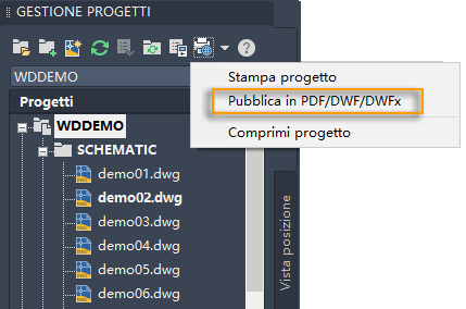 Dopo aver selezionato l'opzione Stampa progetto, è possibile selezionare i disegni del progetto che si desidera stampare.