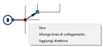 Posizionare il cursore del mouse sopra il grip vertice centrale per visualizzare un menu di opzioni.
