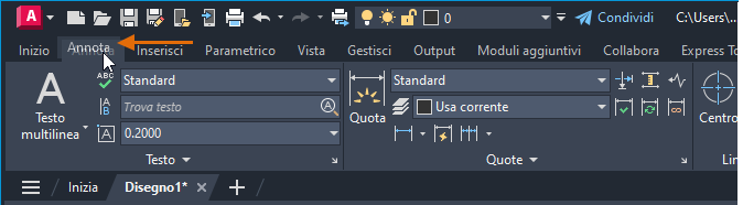 In questo esercizio, si riposizioneranno la scheda Annotazione e il gruppo Quote.