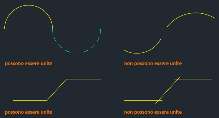 Di seguito sono riportati alcuni comandi utilizzati più di frequente relativi all'unione di oggetti lineari e curvi.