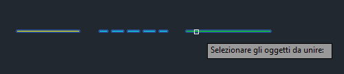 È possibile selezionare più linee. Se gli oggetti non si toccano da un'estremità all'altra o non sono collineari, il comando UNISCI li ignorerà.
