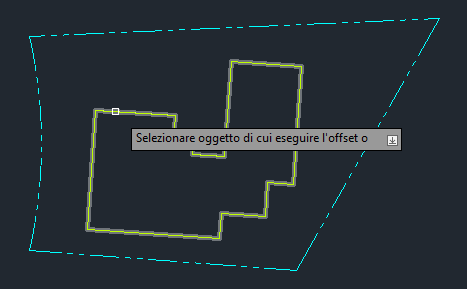4. Specificare un punto sul lato di cui eseguire l'offset. Seleziono l'interno della polilinea.