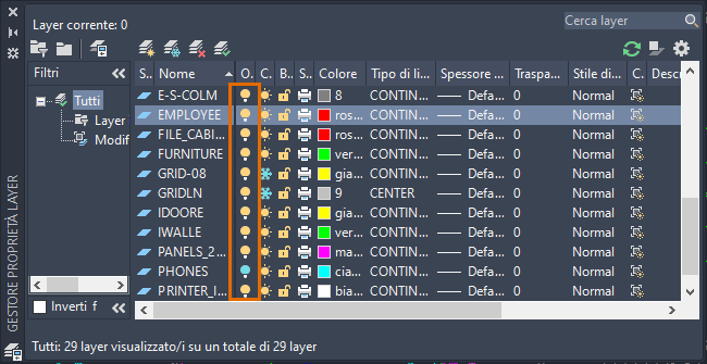 Le impostazioni correnti di visibilità dei layer sono ora associate alla vista con nome e vengono ripristinate quando la vista con nome viene impostata come corrente.