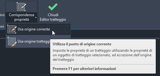 Quando si utilizza CORRISPROP per copiare le proprietà da un oggetto di tratteggio ad un altro, vengono copiate anche le coordinate dell’origine del tratteggio. Per evitare la copia dell'origine, effettuare le seguenti operazioni: