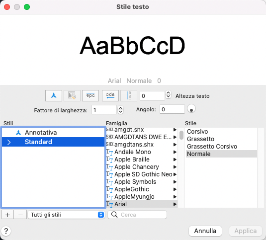 Crea, modifica o imposta gli stili di testo con nome nel disegno.