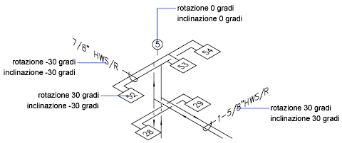 L'inserimento di un valore compreso tra -85 e 85 determina la relativa inclinazione del testo. Un angolo di inclinazione positivo inclina il testo verso destra. Un angolo di inclinazione negativo inclina il testo verso sinistra.