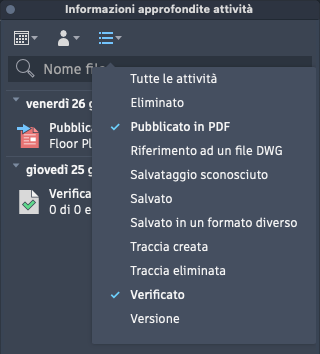 Nota: L'elenco delle attività viene aggiornato ogni volta che il disegno viene salvato.